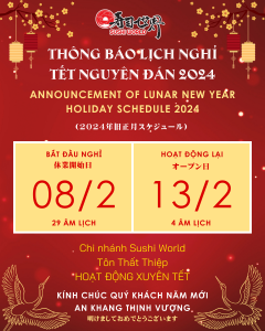 ? SUSHI WORLD xin thông báo “Lịch nghỉ Tết Nguyên Đán 2024” như sau: